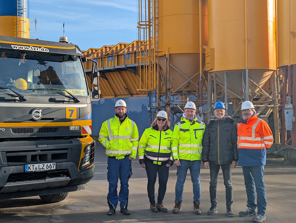 Nach der Begehung: André Heidt (Leiter Technik), Elisabeth Ziegler (Leiterin Marketing und Führungen), Andreas Wucherpfenning (Betriebsleiter und Prokurist), Jürgen T. Knauf (Nachhaltigkeitsmanager) – alle LZR sowie Thomas Gentzow (Auditor vom VDZ Cert) – von links nach rechts (Foto: LZR)